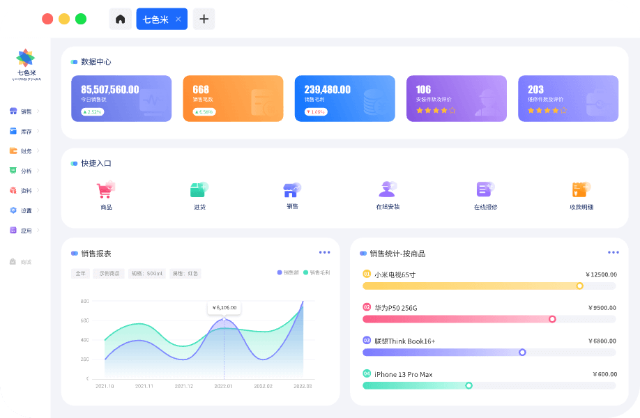 由智慧商贸进销存升级而来,集进货、销售、库存、财务、客户管理和数据分析为一体的进销存管理软件。