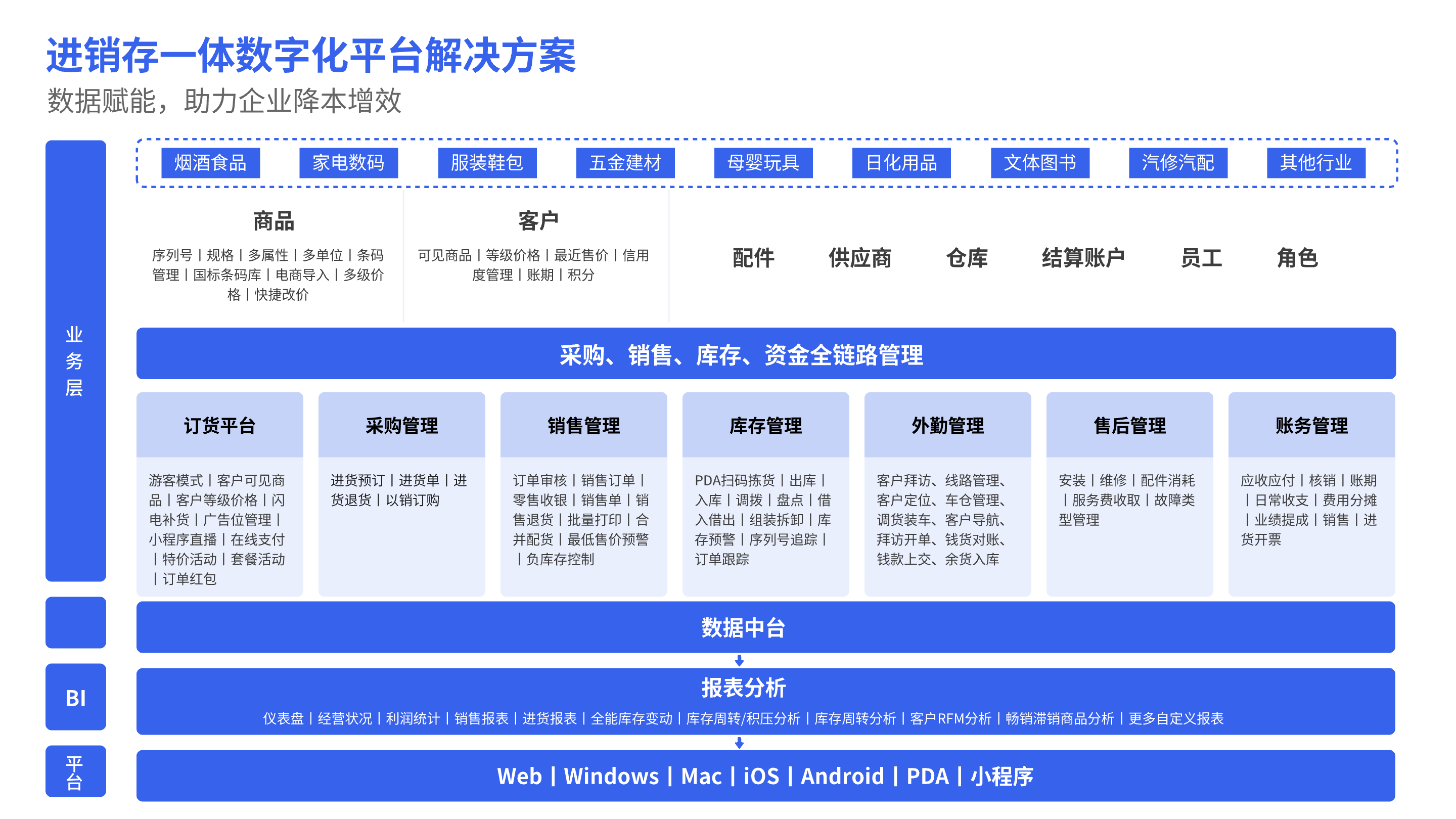 ● 适配场景:需要“进销存+简单财务”全链路管理的中小微企业,尤其适合五金建材、食品批发、服装零售等行业。