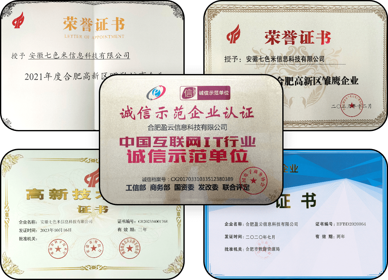 同时,七色米目前已经成功获得5项发明专利、近60项计算机软件著作权等研发成果,及国家科技型中小企业技术创新基金、国家高新技术企业、合肥大数据企业等殊荣和资质。